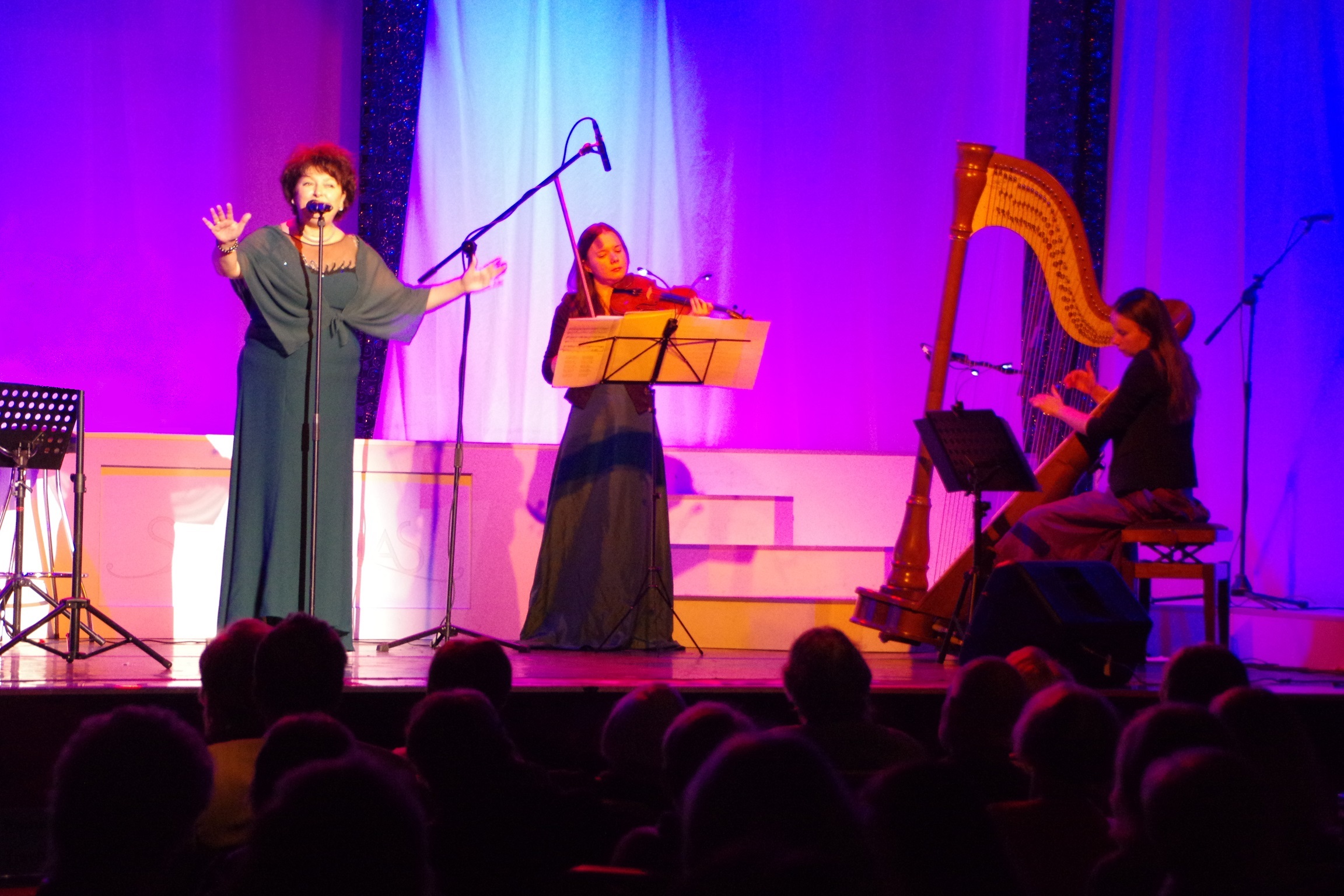 das Duo Paulina & Agata Pospieszny (Geige, Harfe), A- Gittare: Nico Bauer, Percussion: Bernhard Gerber, Moderation: Bettina Bauer & Chor, Balletttänzerin:Constance Hölzel